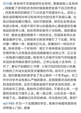 课堂上,陈老师深入浅出的授课方式,总能将电磁场抽象复杂的理论变得形象直观。科研上,陈老师对科学前沿的敏锐察觉以及严谨求真的科研态度,特别是他几近狂热的工作态度和罕见的理想主义情怀深深地感染着课题组的每一个人。与陈老师相处,总能感受到他举手投足中散发出的极具魅力的热情和和蔼。师从陈老师,收益良多。学生在此真心的感谢陈老师,祝福陈老师!