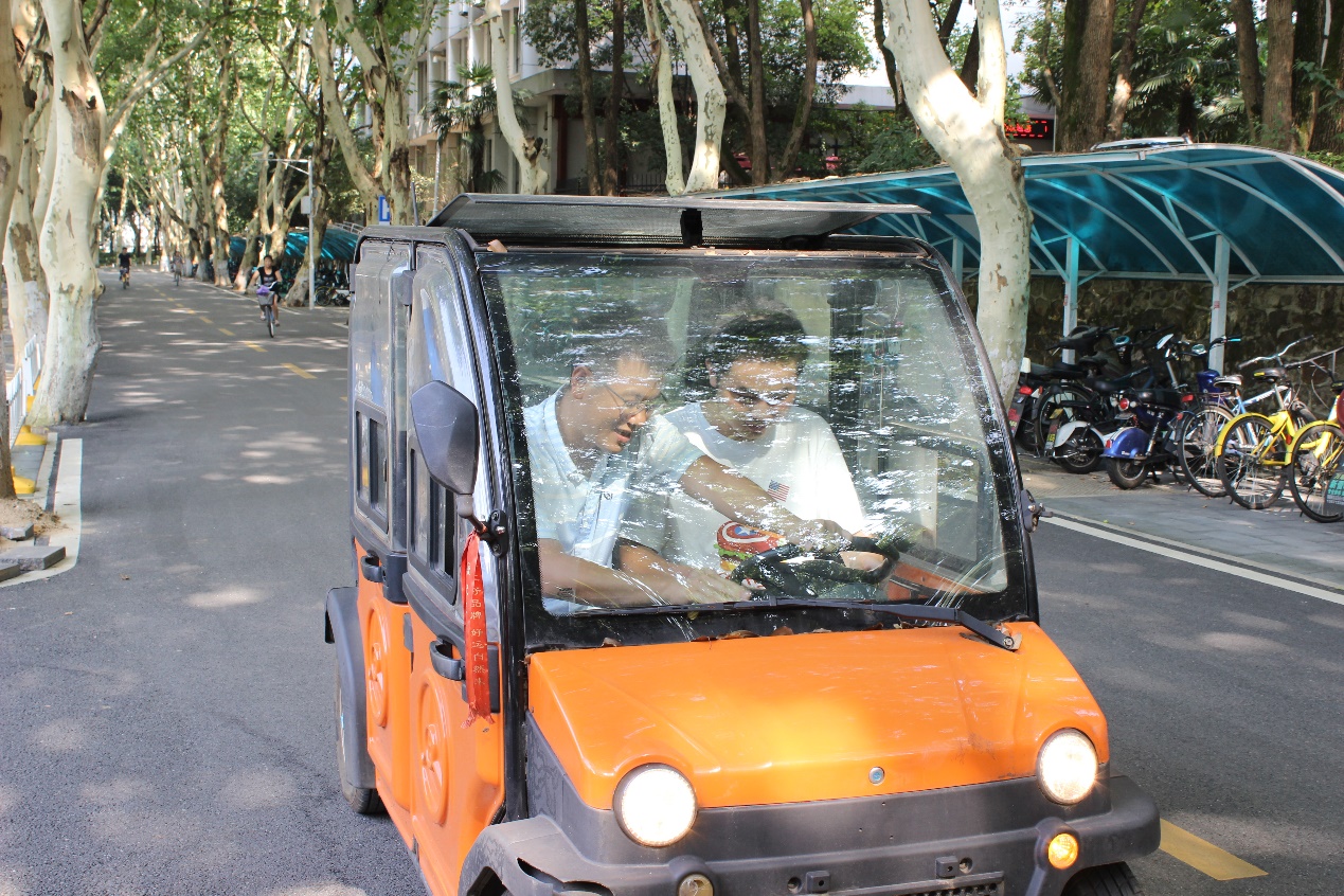 在同学们焊接低速电动车驱动控制器之前,孔武斌老师带领同学们上车体验低速电动车。同学们所要焊接的电机驱动器就是用于驱动此低速电动汽车的核心器件,依次排队上车体验低速电动车的行驶。驾驶着实验室的低速电动车行驶在华科校园内,同学们的内心都无比激动。同学们想到自己可以亲自焊接眼前这辆车的核心器件——驱动控制器,都表现得十分的兴奋,学习焊接电机驱动控制器的欲望也倍增。同学们都渴望自己亲自焊接的电机驱动器可以驱动电机正常运行,这种理论与实践相结合的教学方式大大的激发同学们的学习积极性,与此同时,也加深了同学们对电机驱动硬件和调试的理解。