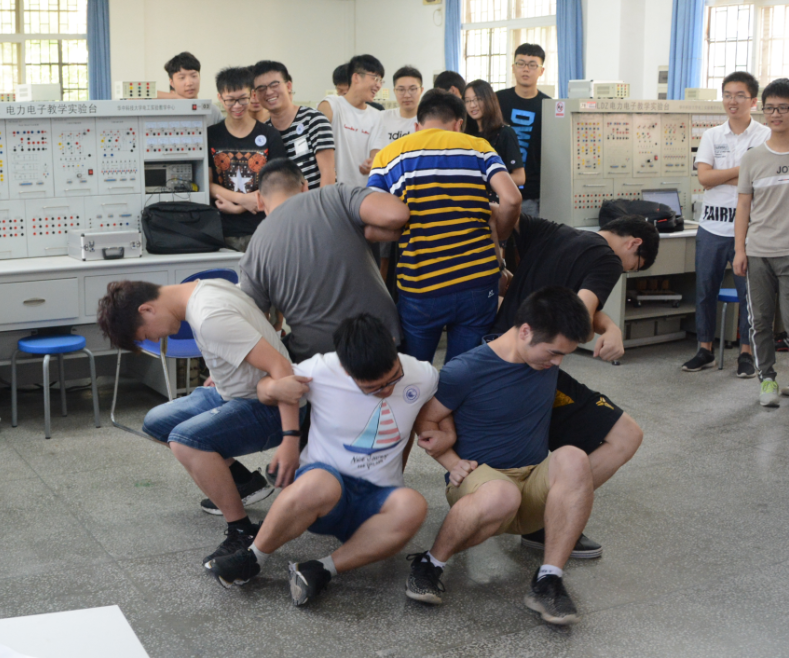 团队建设工作坊,是经破冰活动后自由组队,组建工程营营部,制定营规(明确实验室管理清洁、行为规范、各组义务和责任等等)以实现自主管理,在讨论优秀团队特质后,再通过8张旧报纸30分钟搭出“电视塔”的活动让团队角色和责任的认知建设落到实处,同学们在激烈头脑风暴后,策划分工协作,实施中调整,随着一座座直插屋顶的“电视塔”拔地而起,团队配合变得更默契。