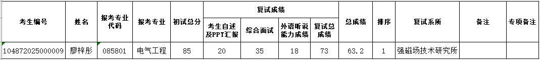 根据学校有关要求,现将电气与电子工程学院2025年面向港、澳、台地区硕士研究生招生复试成绩公示如下: