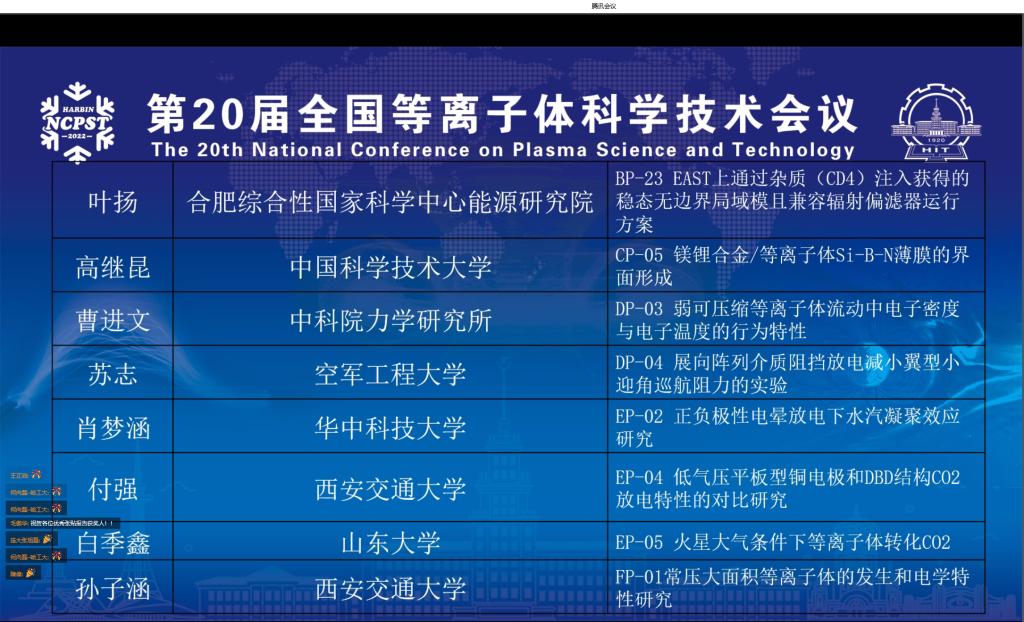 4月23日至24日,第20届全国等离子体科学技术会议成功举办。聚变与等离子体研究所杨州军副教授、严伟博士后与研究生青万均、徐鑫、韩楚、杨庆虎、肖梦涵、吴浩、郭城志、陈蕾共10人参加了此次线上会议。肖梦涵(指导教师李传)获优秀张贴报告奖。