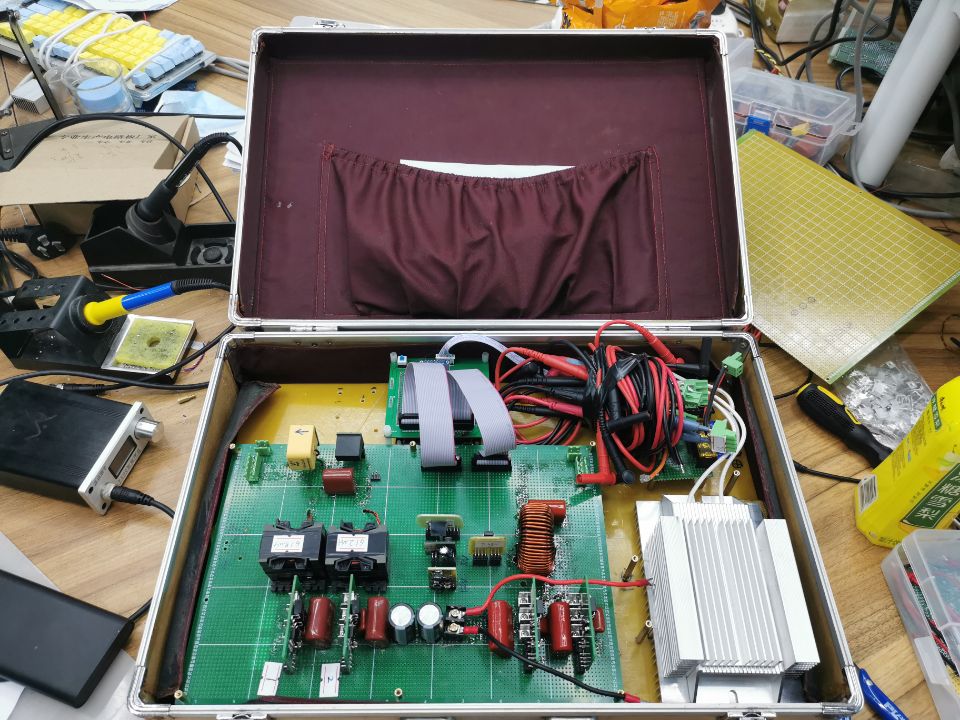 首先介绍A题省赛第一名的雷常威、柏柯舟、李天熙P10组。为防止芯片放烟花意外的出现,模块手柏柯舟在赛前就已批量生产各种备用模块,保证有“炸了就换,换到不炸为止”的底气,可惜的是没有让备用模块发挥作用。主电路手雷常威为了进一步提高系统性能,放弃继续使用模拟题中的电路板,而是重新改良布局,绕制更优化电感,仅用5小时就将主电路焊接完成,不愧是电工基地“快手”。作为P10的灵魂人物,不可或缺的程序猿,李天熙在比赛前就蓄势待发,在他高超的调参功力下,第一天傍晚就已经完成PI参数的调节,更是写下千古名句:总有电路的扰动,敢于直面哥们儿PI参数的威光。虽然入驻基地时间不长,但他们依靠自身的努力和优中选优的进取精神,荣获A题省特等奖第一名。