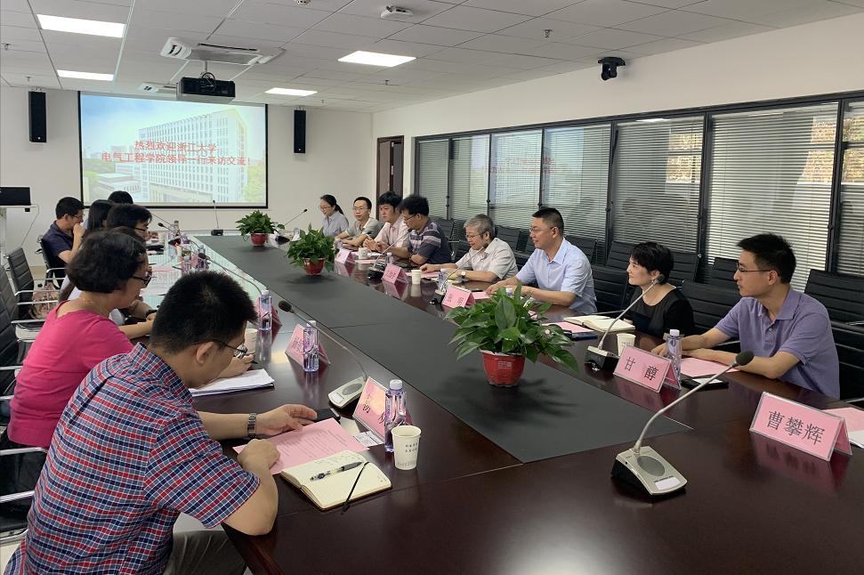 8月4日下午14:30,浙江大学电气工程学院院长盛况、党委书记兼副院长汤海旸、党委副书记陈敏等领导一行七人来体育网足球即时比分 访问交流。体育网足球即时比分 院长文劲宇、党委书记陈晋、副院长张明、林磊以及相关老师热情接待来宾,双方在电气大楼A316会议室召开座谈会,会议由陈晋主持。