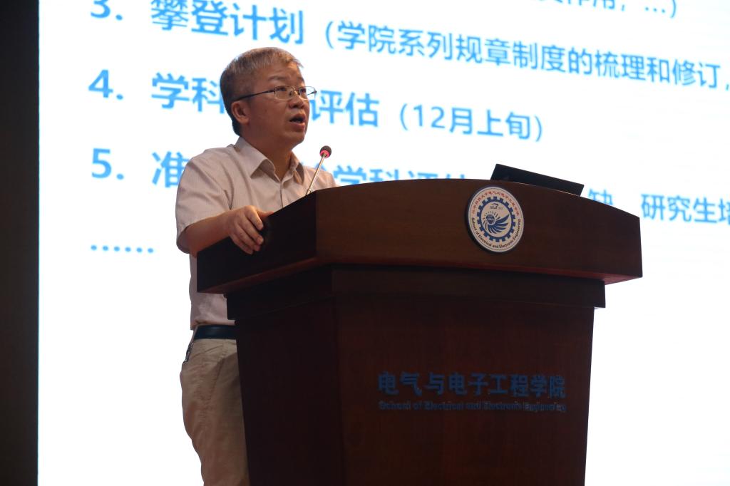 最后,文劲宇作了题为“厚积薄发,担当致远”的学院学科建设情况报告。要坚持“目标导向,全员齐心,全院协同,打造学院共同体,争创一流电气学科”的目标要求,将依靠全院师生,做好顶层设计,逐步推进落实,和谐健康发展作为指导思想;将引进与培养并重,教学与科研并重,加强服务贡献意识,加强保障体系建设作为基本原则。系所是学院运行和发展的支撑和依靠,各个系所与学院行政内部、二级单位之间、院内与院外都要做好协同工作;在未来的一学期里,学院的重点工作有:本科教学以及荣誉学位授予、本科一流专业评选、学科国际评估、电气大楼的合理使用、学院规章制度梳理与修订。文劲宇院长指出,我们要不忘初心,牢记使命,“厚积薄发,担当致远”,争创世界一流电气学科!