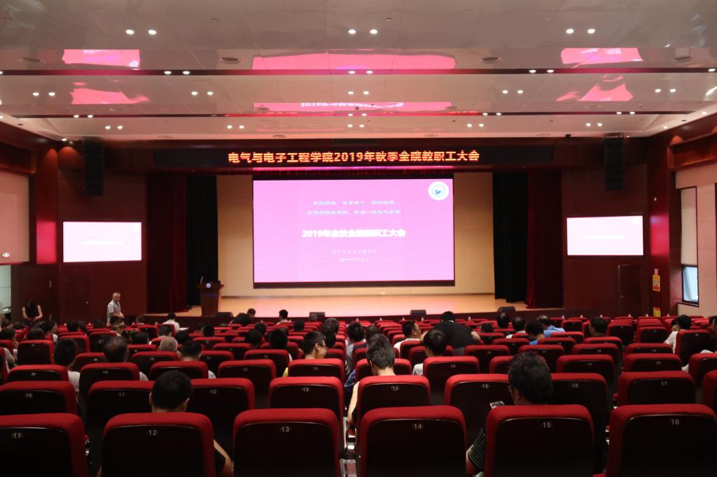 9月6日下午,足球比分直播 在电气大楼报告厅召开了2019年金秋全院教职工大会。大会主要内容有,2019年上半年工作表彰、学院党委巡察工作情况通报、暑期电气科学研究训练营展示、学院学生教育和管理情况分析、学院安全工作及电气大楼情况通报、科研经费管理政策宣讲以及学院学科建设工作报告。