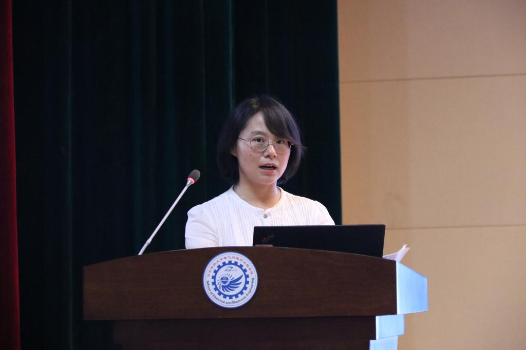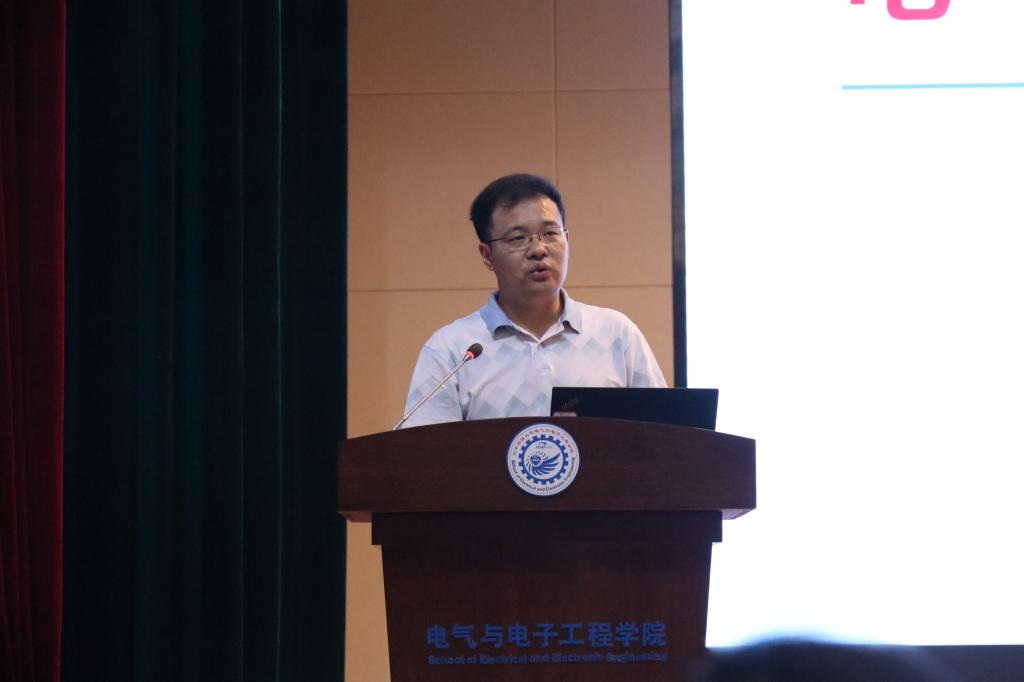 贺恒鑫作为暑期高压训练营的组织者之一,汇报了该营的情况和成果。该训练营作为学院的首次尝试,参营人数达到110余人,其开展过程较为顺利,收获颇丰。一段简短的视频,展现了参营学生们认真学习的态度与高涨的热情。贺恒鑫表示,参加训练营第二阶段的学生人数还不够多,今后需要付出更多努力,吸引更多、更优秀的学生积极参与。