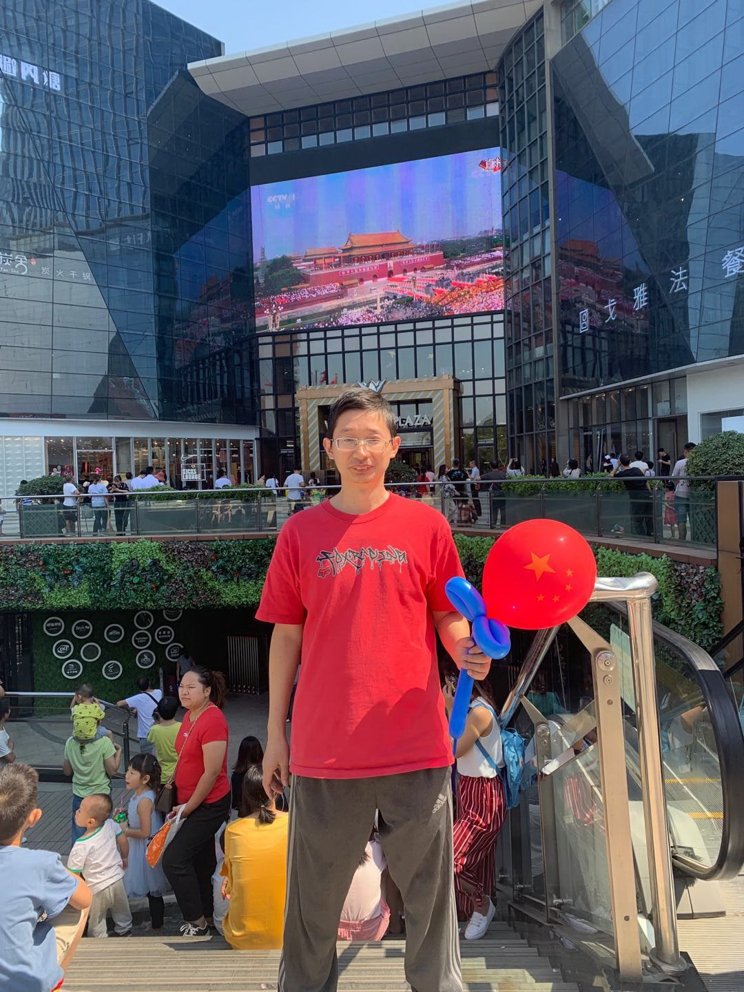 聚变所马少翔老师在电气大楼与家人一同观看阅兵仪式