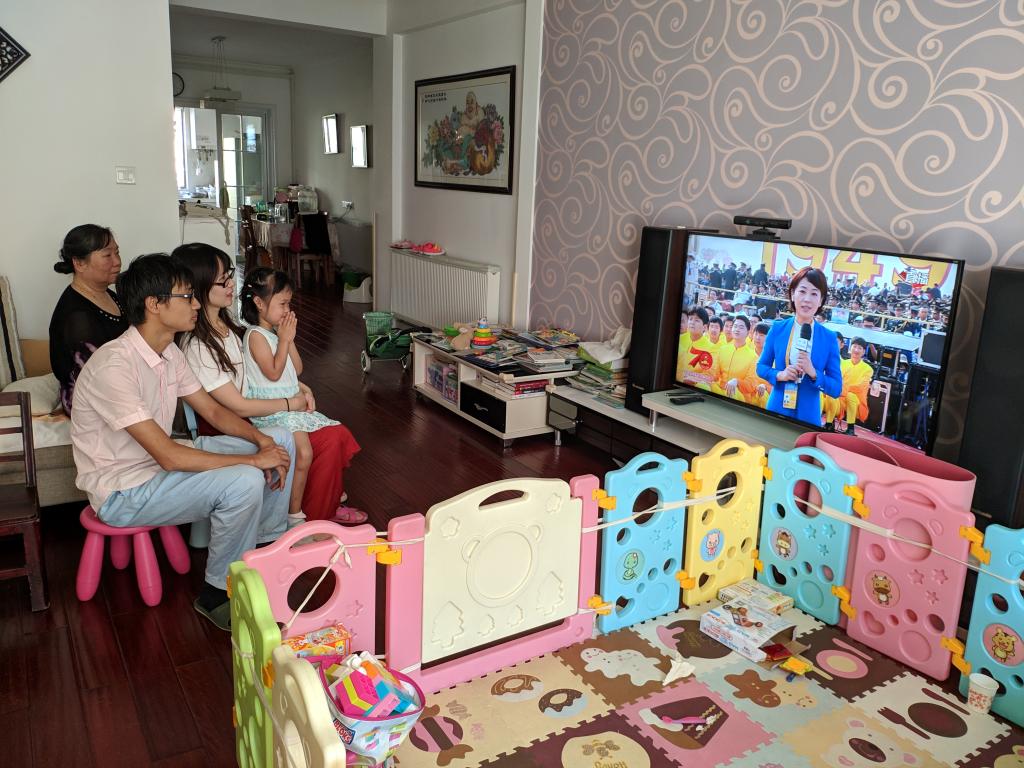 聚变所郑玮老师在家与家人一同观看阅兵仪式