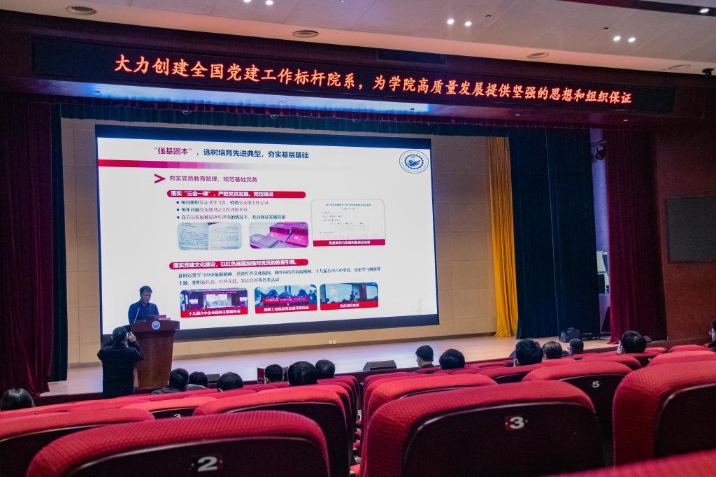 根据防疫工作要求,分为两个分会场。陈晋在电气大楼报告厅B205向教职工党员群众汇报,罗珺在电气大楼多功能厅向学生党员群众汇报。报告全面汇报了从2019年9月完成立项申请,到2022年1-3月完成结项总结过程的主要工作。创建工作圆满完成了五个计划:“头雁领航”计划,扎实落实部署,打造过硬班子队伍;“举旗定向”计划,坚定政治立场,建设红色文化阵地;“铸魂育人”计划,着眼立德树人,完善“党建+”思政教育;“强基固本”计划,夯实基层基础,选树培育先进典型;“融创未来”计划,主动思考谋划,助推一流学科建设。