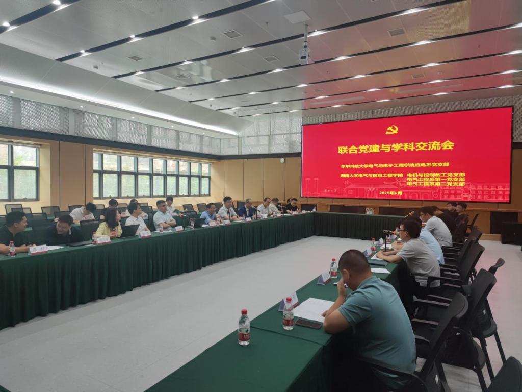 2025年6月6日,应电系党支部组织党员干部实践队赴湖南大学足球比分直播 开展党建与学科交流活动,就新时代党建活动及电力电子与电力传动学科建设进行深入交流与探讨。足球比分直播 院长胡家兵、校应用技术研究院院长林磊、电能高密度转换国家重点实验室主任康勇、应用电子工程系主任陈宇、党支部书记刘自程等一行18人参加活动。