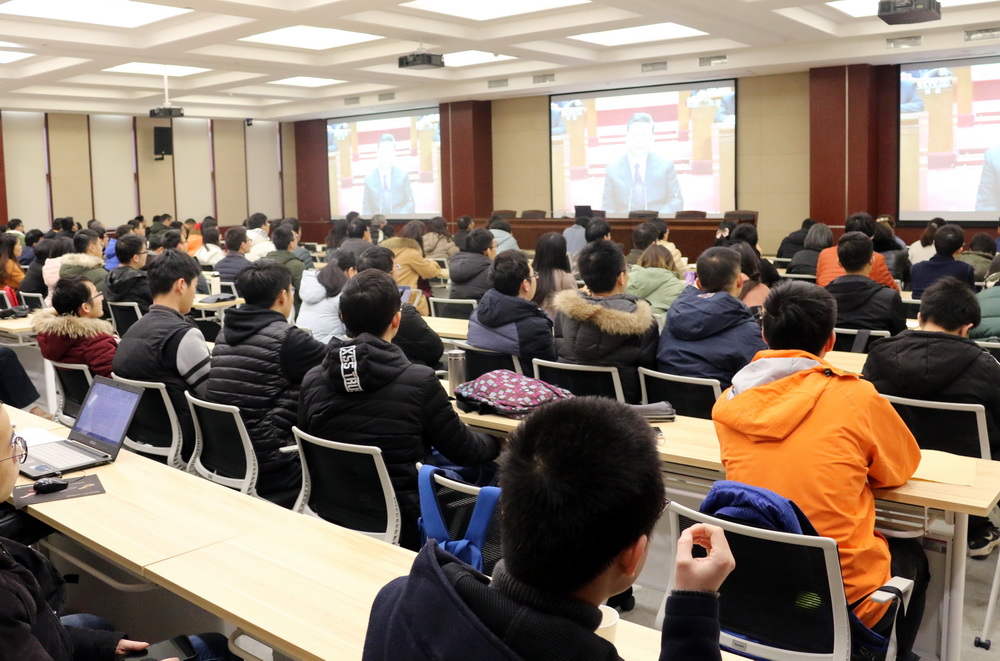 学院党政班子成员、学院行政系统职员、各系所党员教职工代表等在电气大楼三楼报告厅集中收看大会。各系所通过多种形式组织师生集中收听收看庆祝大会。
