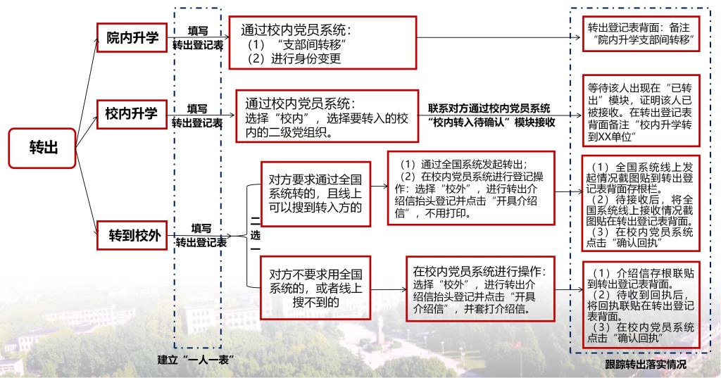 具备使用全国党员管理信息系统条件的转出党组织,应通过全国党员管理信息系统组织关系转接子系统,转接党员组织关系,搜索二级单位党委全称发起转出,无需开具纸质组织关系介绍信。新党员来校报到后及时向接收党组织报告组织关系接转情况,办理转入手续。例:某新党员通过全国党员管理信息系统转入足球比分直播 党委,转出党组织在全国系统中搜索并选择“中共足球比分直播-体育网足球即时比分委员会”,发起转出。