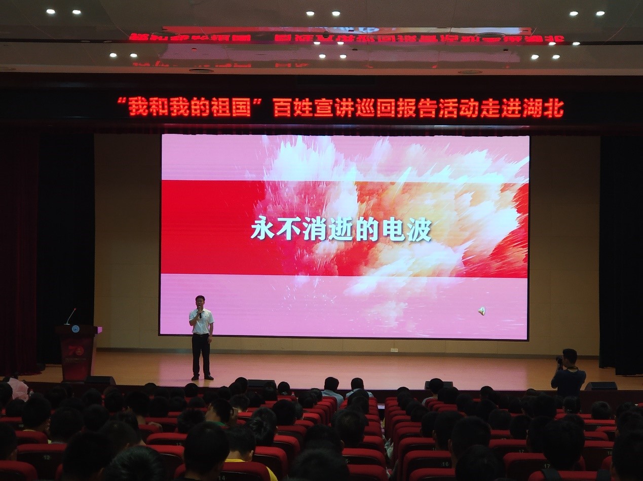 为隆重庆祝中华人民共和国成立70周年,大力唱响礼赞新中国、奋进新时代的昂扬旋律,9月10日上午,由中央宣传部、全国总工会、共青团中央、全国妇联联合开展的“我和我的祖国”百姓宣讲活动走进湖北,来到了华中科技大学。宣讲团先进典型在电气大楼报告厅为师生作了精彩的报告,学院2019级新生有幸在现场聆听。