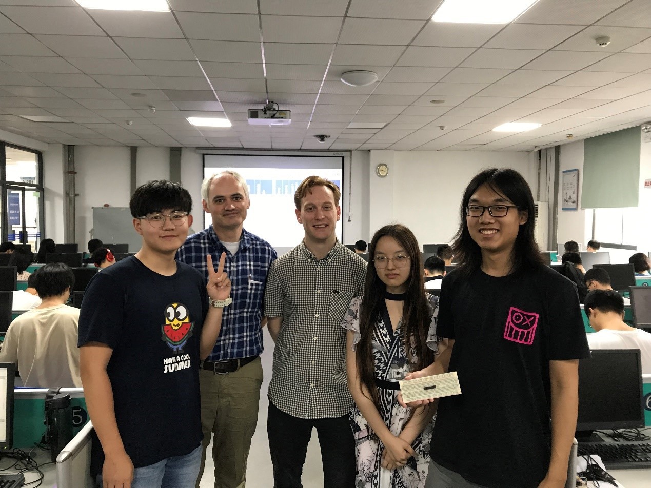 7月5日至7月9日,英国伯明翰大学教授于东校区工程实训中心面向电气、电信、电子、计算机和人工智能学院2017级校际交流班学生授《电子元器件测试》课程,学时为24学时/一周。通过伯明翰电子元器件测试夏令营,我们将书本上学到的知识用于实践,特别提高了团队合作能力和错误排查能力以及动手能力。全英文授课提高了学生用英文与人交流专业知识问题的能力和自信。