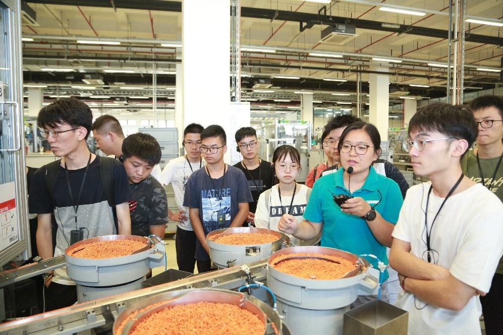 在完成了有关智能制造的文献综述和PLCnext等知识的先导学习后,训练营全体成员于8月5日上午前往南京菲尼克斯公司进行参观学习。成员首先参加了菲尼克斯的安全培训,公司沙诺老师为同学们讲解了“精益管理”课程。成员们再课后参观了菲尼克斯的装配和注塑车间,现场了解、学习了零件生产和成品生产的相关知识。