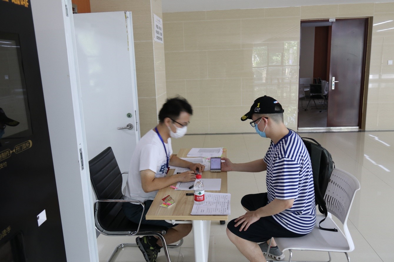 返校毕业生核对毕业手续办理情况并领取毕业礼物