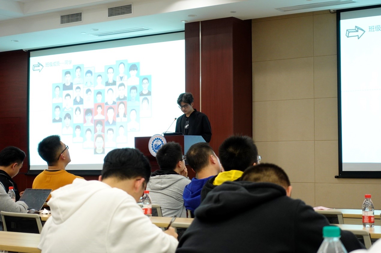 各班答辩人按照顺序依次进行展示。1907班的学习委员张家华汇报了1907班的学习情况,并介绍了他们组织的班级团体活动,例如资助月活动、特色团日活动、暑期社会实践以及班级周测。1908班班长沈毅介绍了班内许多特色化的制度,为了让每个人都有参与感,他们建立了副班长轮班制,让班级参与感低的同学轮流当副班长,参与班级事务的管理;为了督促班级同学的学习,他们制定了班级积分制;他还展示了两个小视频,这令评委们眼前一亮。气卓1901班答辩内容也十分亮眼:班级加权平均分位列年级第二、多门学科领先;学生工作方面,多人担任学生干部;社会服务方面义工工时高达500+,个人最高44;此外,他们还建立了互帮互助小组,让班级成员们有了高度的归属感和荣誉感。