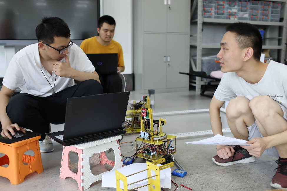 强大的助教资源、优秀的老师团队则是我们疑难困惑解答的好帮手。基地有一套严谨的培训计划,控制组常驻基地成员需要跟随助教前辈的脚步,踏踏实实完成基本模块的学习,根据培训题交流讨论出合理方案,集思广益创造出最佳方案,在有限的时间内多快好省地完成作品的制作。在验收日,助教根据指标验收各组的作品。正是这一套循序渐进、充分发挥控制组各组创造力的培训,让控制组各位成员积累了丰富的经验,从而能够在全国竞赛的题目中充分发挥自己的能力和特长。