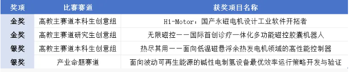 本次大赛华中科技大学共斩获7金4银3铜,其中体育网足球即时比分 斩获2金2银,此外,由体育网足球即时比分 推荐参赛的国际项目获银奖1项。参赛项目“Hi-Motor:国产永磁电机设计工业软件开拓者”晋级全国四强排位赛,和40个脱颖而出的项目同场竞技,荣获高教主赛道本科生创意组金奖;“无限磁控——国际首创诊疗一体化多功能磁控㬵囊机器人”荣获高教主赛道研究生创意组金奖;“热尽其用——面向低温磁悬浮余热发电机领域的高性能控制器”荣获高教主赛道本科生创意组银奖;“面向波动可再生能源的碱性电制氢设备最优效率运行策略开发与验证”荣获产业命题赛道银奖,创造了体育网足球即时比分 在中国国际大学生创新大赛中的历史最好成绩。