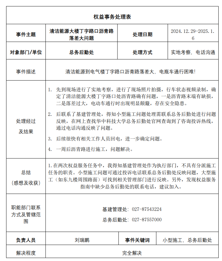 学院团委深入践行"以学生为中心"的发展理念,创新构建"双平台双渠道"服务体系,形成"诉求收集-分类处置-跟踪反馈-效能转化"的闭环管理机制:搭建"倾听你的关注‘电’"院领导接待日与"师生面对面"教师开放日两个约会平台,通过13场活动,覆盖超100人,搭建起师生双向奔赴的对话空间;线上线下双渠道并进,既依托QQ、微信、线上信箱三大维权反馈平台打造"指尖上的服务大厅",又通过"校-院-班"三级联动织密权益保障网,建立每月权益月报机制。此外,学院收集104条学代会、研代会提案,并制定详细的解决方案,积极推进楼宇充电桩增设、卫生巾互助体系建立等多项民生工程,不仅彰显了学院的温度,更构建起师生共治共享的治理新生态。