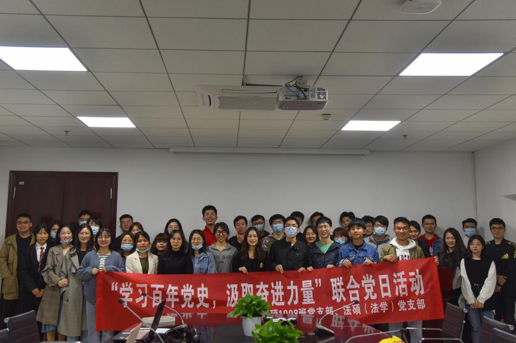 为了深入学习习近平总书记在党史学习教育动员大会上的重要讲话精神,贯彻落实党中央、教育部以及学校党委关于开展党史学习教育的决策部署,教育引导支部党员发扬红色传统、传承红色基因、赓续红色血脉,从党的百年伟大奋斗历程中感悟感悟马克思主义的真理力量和实践力量,3月29日晚,电气硕1908班党支部及法硕(法学)党支部联合举办了“学习百年党史,汲取奋进力量”主题党日活动,两支部共40名党员参加。
