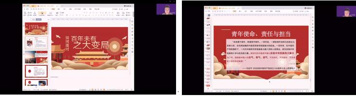 孙维聪从“黑天鹅“与”灰犀牛”两个词语出发,用多组事例说明了当今世界形式的复杂多变。面对百年未有之大变局,他从认识政治经济结构基础、掌握当前世界变化、秉持共同体意识、坚定四个自信等多个角度展开,指出青年人在现在和未来要发挥更加重要的作用,用青年人的使命、责任与担当来应对世界百年未有之大变局。