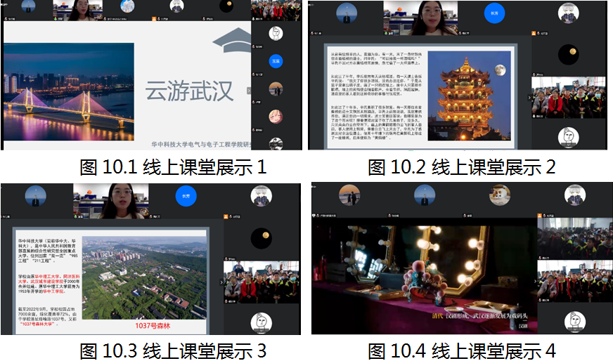 2022年12月15日下午,电气硕2203班的同学们、研究生会部分成员与完小支教老师魏长芳以及班级同学们取得了视频联系。借助于多媒体技术,通过生动有趣的讲解和“移步换景”的画面内容,主持人带领完小的同学们云游了武汉著名地标,探索了华中科技大学的校容校貌。从“1037号森林公园”,到“天下江山第一楼”黄鹤楼,再到红色故地“首义广场”,体验江城之景、喻家山之美,以及红色文化之情。