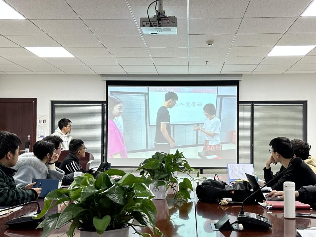 硕2101班党支部书记郑建栋介绍了党支部紧紧围绕学院党委整体部署,在院党委的正确领导下,全面贯彻落实党的二十大和二十大一中全会精神,始终以“党旗所指,青春所向”为支部建设思路,紧紧围绕党建带团建、党建促科研的支部建设目标,认真开展各项工作,严格履行党支部“三党员四群众”的主要职责,扎实筑牢党支部战斗堡垒。党支部搭建本科生一对一帮扶平台,鼓励支部党员积极投身学生组织,主动响应校庆、院庆志愿服务,积极开展社会实践活动,在实践中践行入党誓言,积极发挥党员先锋模范作用。