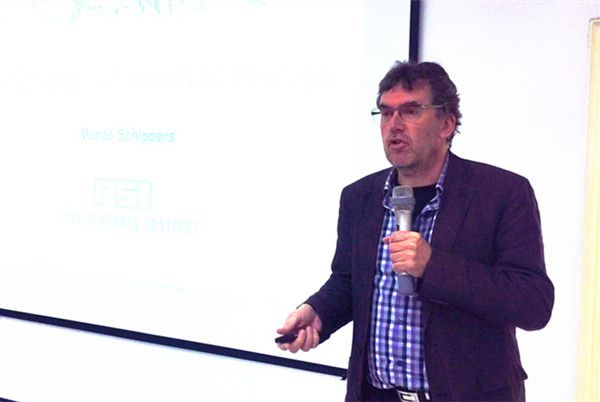 Schippers教授在学院加速器楼大会议室做了学术报告,报告题目为“Experience with the superconducting cyclotron for proton therapy at PSI”(PSI用于质子治疗的超导回旋加速器研究)。该报告深入浅出,以PSI质子治疗装置的250MeV超导回旋加速器为例,详细介绍了加速器的参数指标,以及各个子系统的设计问题。