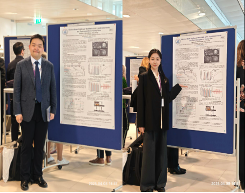 团队23级博士研究生李浩哲在海报“Electron Beam Grafting of Modifiable Ionic Liquid Adsorbents and Their Adsorption of Uranyl Ions”(电子束接枝改性离子液体吸附剂对铀酰离子的吸附)中提出一种绿色高效的吸附剂合成策略:通过10 MeV电子束诱导“硫醇-烯”点击反应,将新型乙烯基离子液体接枝至硅基材料,并结合迈克尔加成修饰螯合基团,制得e-HMS@IL系列吸附剂,为核燃料循环中的铀资源回收提供新思路。团队23级博士研究生张祯益在海报“Thermal Stress Analysis and Structural Optimization of Electron Guns for Electron Beam Irradiation Processing”(电子辐照加速器电子枪热应力分析与结构优化)中通过多物理场耦合仿真揭示了盘香型灯丝热变形导致束流失稳的机制,并针对性开发电极几何优化设计、偏置电压动态调控及灯丝空间构型补偿策略,可抑制束斑畸变、稳定束流电流并提升聚焦精度,使理论辐照参数与实际性能偏差显著缩小,为高功率电子枪的长寿命运行提供了技术支撑。
