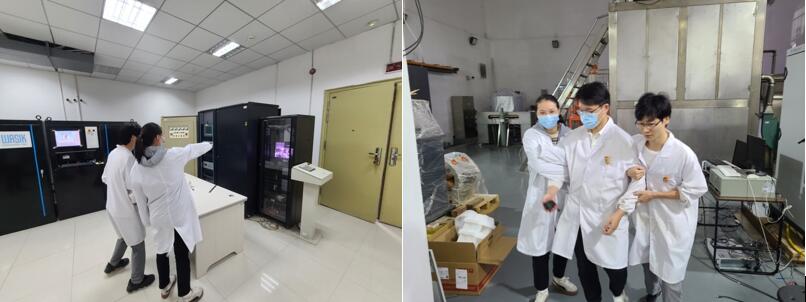 图3 保障小组秦斌老师、李冬老师和陈曲珊老师控制现场,并检查剂量点数据