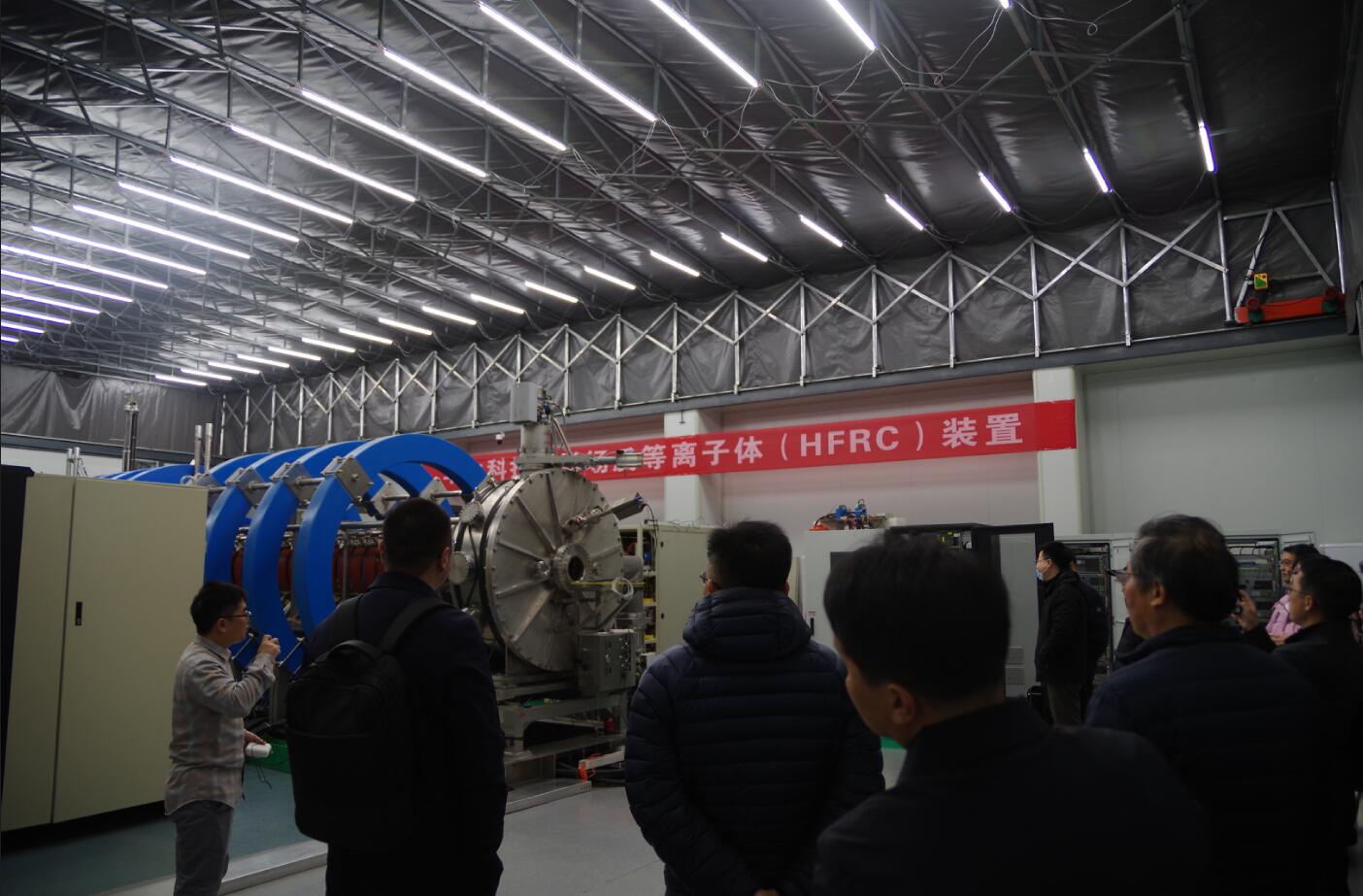 足球比分直播 党委理论学习中心组一行首先参观了“惯约”能源组件样机和场反等离子体(HFRC)装置。样机和装置在位于佛祖岭的实验场所,足球比分直播 副院长刘毅、聚变与等离子体研究所副教授饶波对于装置的原理、作用以及先进性进行了现场介绍。