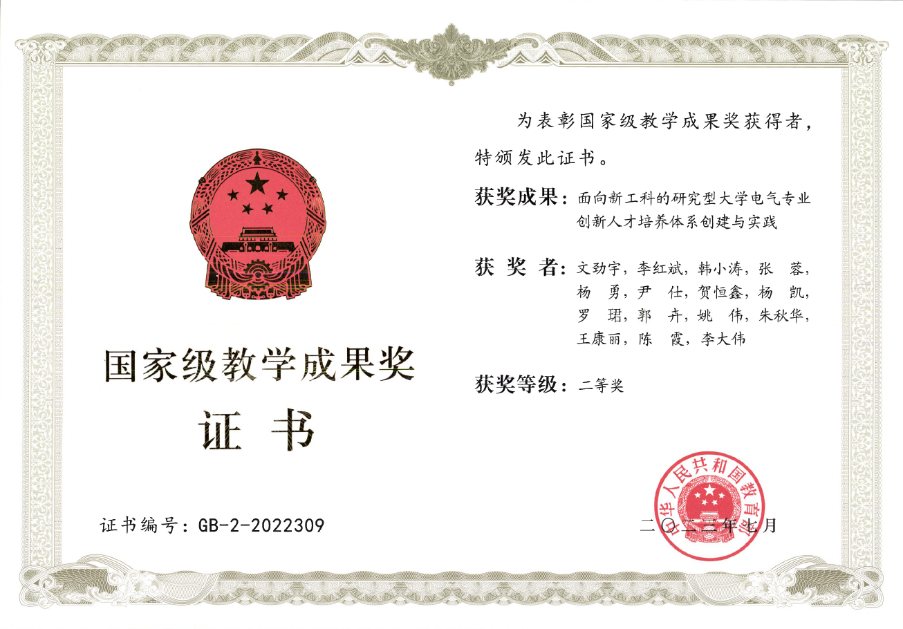 科研成果丰硕显著,彰显学科创新实力。电气工程学科广大教师充分发挥积极性和创造性,坚持四个面向,不断产出重大科研成果。2018年以来牵头成果获得国家科技进步一等奖1项、二等奖4项,高等学校科学研究优秀成果奖自然科学奖一等奖1项、科技进步奖一等奖2项,湖北省自然科学奖一等奖1项,技术发明一等奖1项,科技进步奖特等奖1项、一等奖3项,另有省部和学会奖励30余项。“增强我国输变电工程韧性的建设思路”获得中央领导批示。引领学科发展方向,出版首部国家科学思想库丛书《中国学科发展战略·先进电工材料》。脉冲强磁场国家重大科技基础设施项目获国家科技进步一等奖,实现了足球比分直播 国家科技奖励一等奖的突破。“新型电力系统大规模锂电储能关键技术及应用”项目获国家科技进步二等奖。牵头研发的重大科研攻关项目“大容量短路电流开断装置研发及工程应用”,其科研成果标志着我国220kV系统用高压断路器的开断容量指标达到国际最高水平。另有项目获得高等学校科学研究优秀成果奖自然科学奖一等奖1项、科技进步奖一等奖2项。