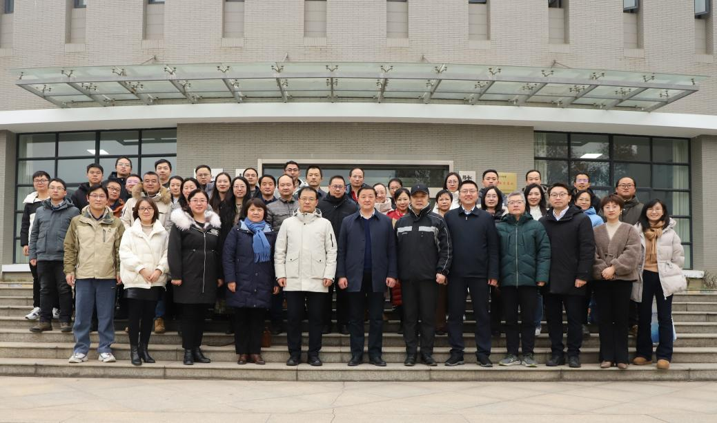 参会人员在强磁场中心合影留念。之后,人事处党总支党员参观了强磁场中心,实地了解了脉冲强磁场国家重大科技基础实施一期运行、二期建设以及人才引进与培育等情况。