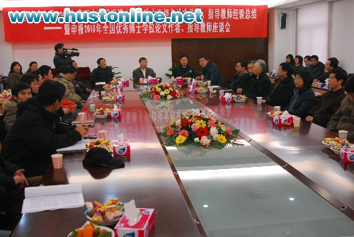 新闻网讯 1月21日,学校举行会议表彰2009年获得全国优秀博士学位论文及提名论文作者、指导教师,并就优秀博士生的培养和优博论文的申报工作进行了座谈交流。校长李培根、副校长邵新宇,获奖师生代表及申报2010年优博论文的师生代表参加了座谈。研究生院常务副院长冯征主持座谈会。
