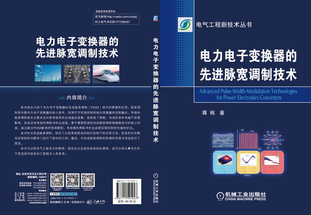 由蒋栋教授撰写的电力电子专业著作《电力电子变换器的先进脉宽调制技术》,近日由中国机械工业出版社正式出版并发行。该书以创新为基调,大部分内容属于原创,其中的一些技术走在了世界的前沿。它为通过脉宽调制实现电力电子变换器性能改善开辟了新的思路,也必将对电力电子产业产生正面的推动作用。