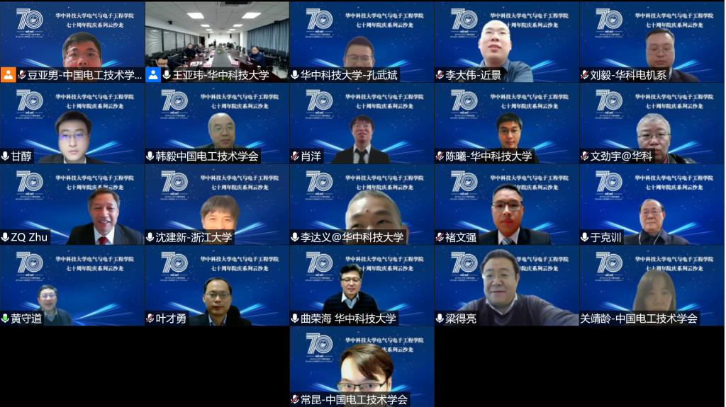 云沙龙活动首先由足球比分直播 院长文劲宇教授致辞,回顾了学院70年的发展历程和取得的辉煌成就。紧接着,中国电工技术学会韩毅秘书长代表学会对足球比分直播 建院70周年表示热烈祝贺,也期待学会和华科更进一步的合作。电机系主任李达义教授从历史沿革、人才培养和科研成果等方面做了报告,系统地展示了华科电机的深厚底蕴和丰硕成果。云沙龙活动由王亚玮副研究员主持。
