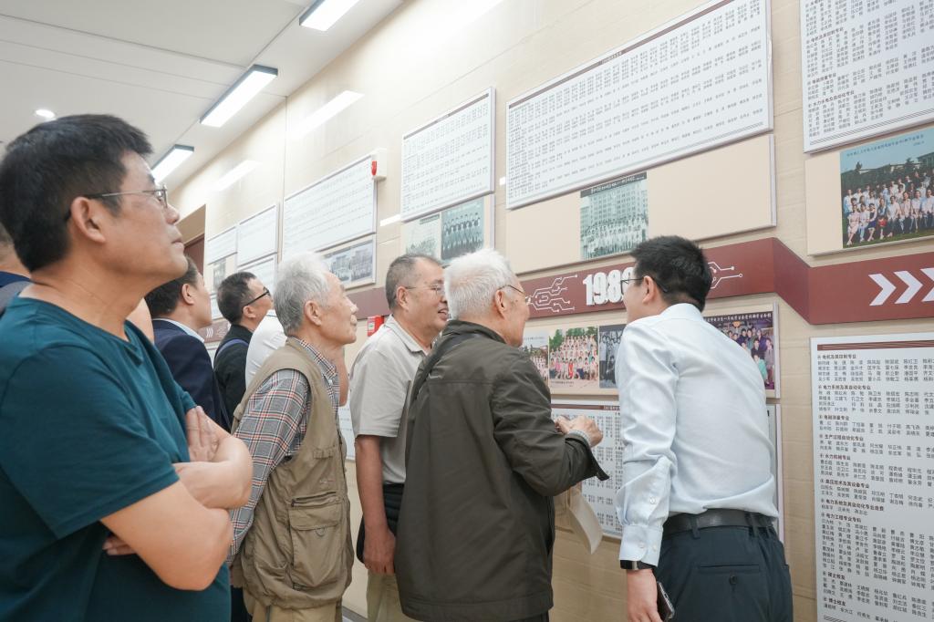 接着,他们来到了电气大楼二楼的院史长廊,他们在这里驻足观看,他们为学院在学术科研、人才培养等方面取得的显著成就感到骄傲自豪。学院的辉煌历史通过时间轴的动线,清晰地给院友们展示了学院70多来的发展与成果。在电气大楼的南门前,院友们与老师们合影留念,用镜头定格了这一难得的团聚时刻。