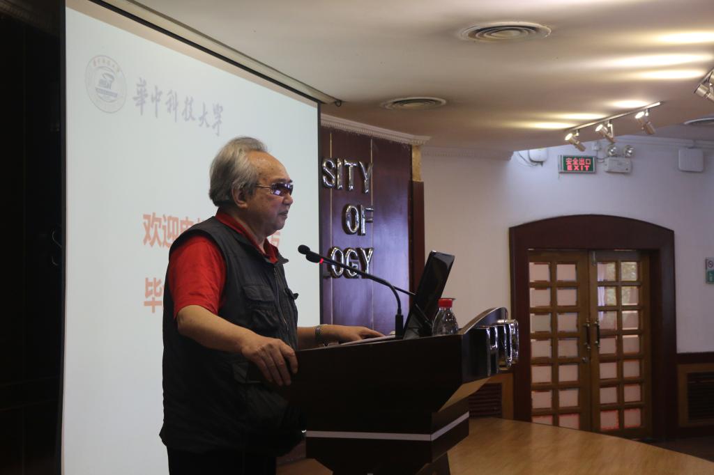华中工学院1955届本科第一班的学生、曾任华中工学院的副校长姚宗干为本次座谈会致辞。姚宗干一直殷切关注着学校的发展,他忆起五六十年代的校园生活,那时电专业的同学们学习的最大困难还是“缺电”,而今日,学子们已经拥有了良好的学习环境与诸多学习资源,这离不开历届校友的努力。他仍引用了朱九思老校长的名言:“校友是学校和社会联系的天然纽带”,对同学们的贡献表示感谢,并希望大家在保重身体的同时,也能继续关注学校的发展,常回来看看。