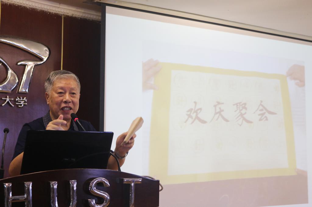之后,张勇传院士发言。作为华中工学院第一届学生,他见证了学校数十年来的变化,光秃秃的喻家山如今已郁郁葱葱,风华正茂的学子们如今也已白发苍苍。往昔五年朝夕相处,如今五十年后再聚首,他见到同学们似曾相识的脸庞十分感慨。同学们仍像从前一样认真地听着老师发言,并报以热烈掌声。