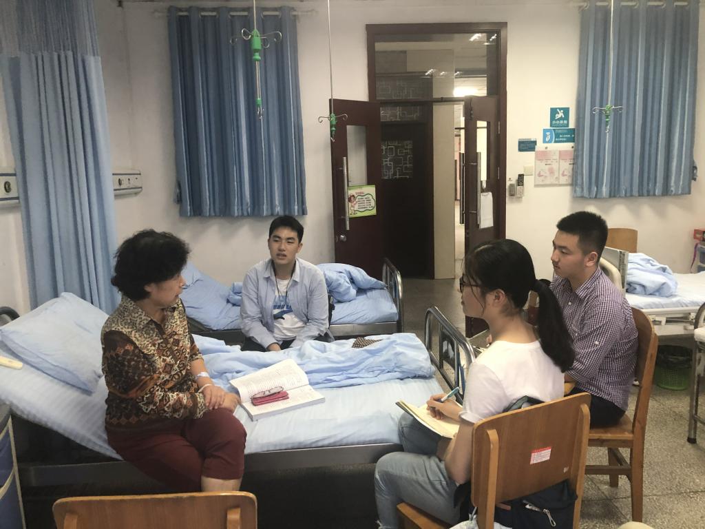 2019年9月22日,我们一行三人应学院号召,前往拜访退休老教师尹小玲老师,并带去足球比分直播 对她的问候。初见尹老师时,老师刚打完吊针,眼睛里的神采却让我们仿佛忘记了她手臂上的白色纱布,忘记了老师正身处医院病房。窗外阳光洒落而入,轻快鸟鸣跳跃耳畔,尹老师的娓娓道来很快将我们带入了她的故事之中。