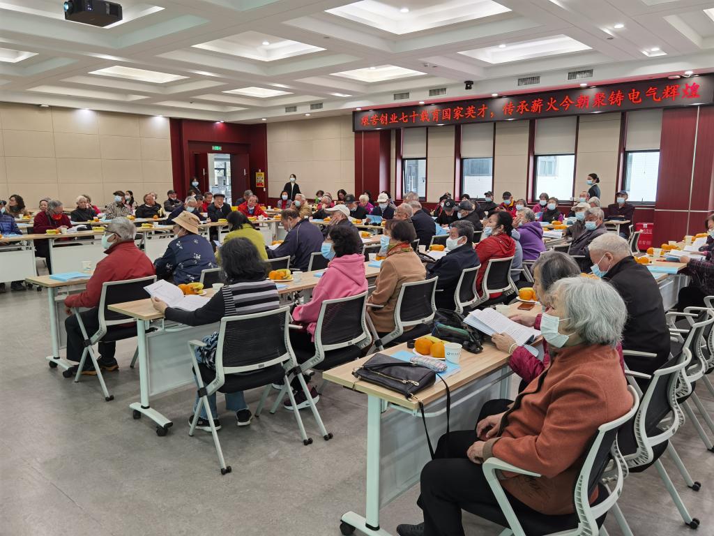 2021年11月11日,足球比分直播 在B203多功能厅召开了2021年度“足球比分直播 院史编撰阶段性汇报暨老同志工作座谈会”。会场LED屏上显示出“艰苦创业七十载育国家英才,传承薪火今朝聚铸电气辉煌”的横幅。节气刚过立冬,天气略冷,但80位老同志们个个精神矍铄,整个会场洋溢着欢乐温暖的热烈氛围。