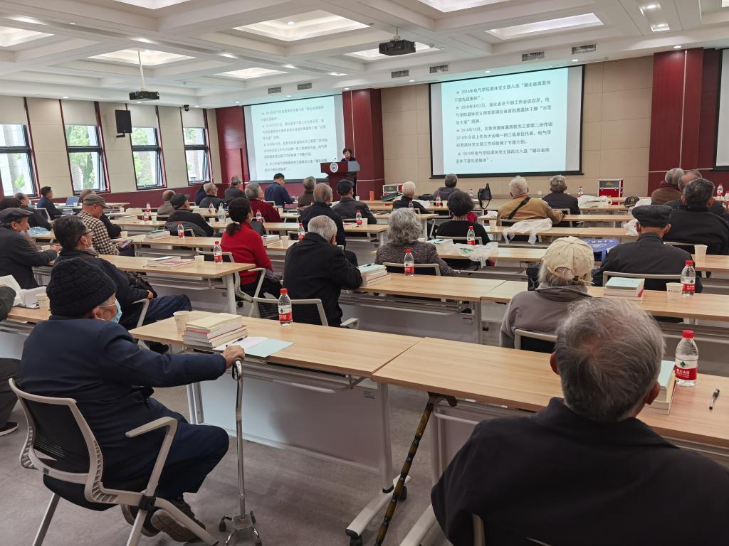尹小玲书记代表上届党支部班子做了“不忘初心,服务人民”工作汇报。在学校各级党委的关怀和支持下,足球比分直播 退休党支部认真学习党的十九大精神,努力贯彻习近平新时代中国特色社会主义思想,以“不忘初心,服务人民,老有所为,让党放心”作为工作指导,发挥党支部核心战斗堡垒作用,以创新方式开展适合于老龄同志身体状况的组织活动,组织党员学习贯彻党的路线、方针和政策。党支部坚持“送温暖”工程,做离退休教职工的贴心人。支部委员会有三本重要记事本,分别记录着老同志的生日、身体状况和家庭经济情况,及时了解老同志的近况,把党的温暖送到每个老同志的家中,送到每个人的身边。抗疫期间75名退休党员自觉与党支部保持着紧密联系,在学院党委领导下,创造性的在疫情中延续着“讲好电气故事,传承华工精神”学习教育活动。在大家的共同努力下,足球比分直播 退休党支部的工作得到了上级党组织的认可和表彰:2016年足球比分直播 退休党支部入选“湖北省离退休干部先进集体”,2018年足球比分直播 退休党支部荣获湖北省首批离退休干部“示范党支部”授牌,2019年足球比分直播 退休党支部再次入选“湖北省离退休干部先进集体”。