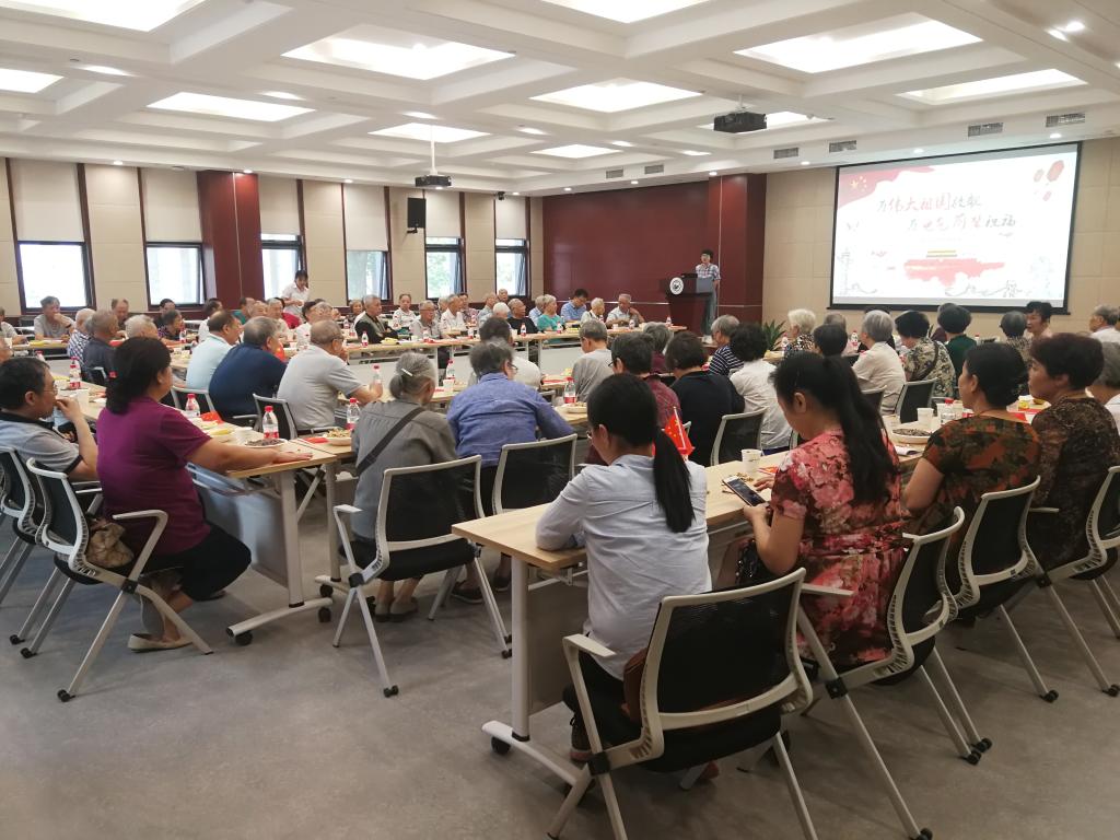 会议在欢乐的轻音乐声中开始。电工系退休教师周丽华一展歌喉,为大家演唱歌曲《我爱你,中国》,孙亲锡以满满的乡思情为大家清唱《九月九的酒》,然后全体退休教师齐唱《我和我的祖国》。会场气氛随着合唱歌曲进入高潮,老同志用饱满的热情、昂扬的状态,挥舞着手中的国旗,唱响对祖国的赤子之情,歌唱伟大的祖国,希望伟大的祖国繁荣昌盛!