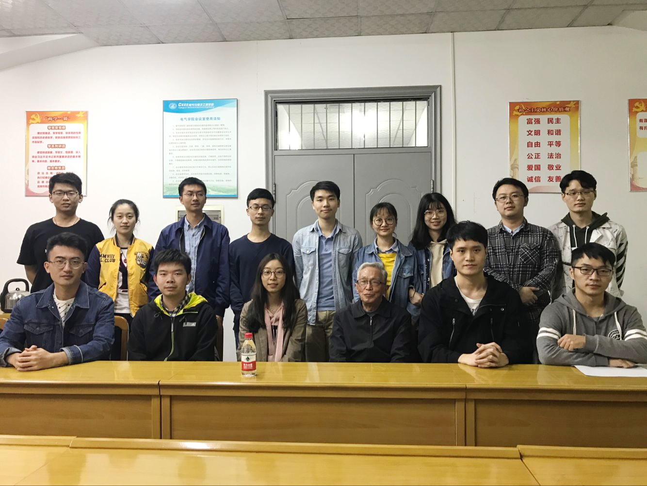 在硕士1805班党支部,叶妙元老师借着学习这个话题,为同志们分享了他60多年来的学习、工作经历。叶老师在50年代考入了当时的华中工学院,之后便从事电测方面的工作,先后涉及过欧姆基准、强磁场、超导等方面的课题。当时的科研条件并不如现在这样优越,那一辈科研工作者,发扬了艰苦奋斗的精神,在一穷二白的基础上取得了硕果累累的科研成果。到如今经过了几十年的奋斗,我国终于建成了坚强的智能电网,叶老师为此感到相当自豪。有同志提问应该如何做科研,叶老师回答道,首先,课题的精神要吃透,要广泛的阅读资料,抓住课题最根本的问题;另外就是要攻关,叶剑英有一首诗写到攻城不怕坚,读书莫畏难。科学有险阻,苦战能过关;还要有明确的技术方案,多与老师沟通;最后就是沉下心来,几十年如一日地刻苦工作。除了学习和工作以外,叶老师很亲切地聊了许多生活上的事。叶老师生活中是一个很自律的人,从来没有睡过懒觉,到了80岁高龄依然每天坚持锻炼,真正做到了每天锻炼一小时,健康工作50。他再三叮嘱同学们,科研工作再忙也不能放弃锻炼身体。叶老师动情的说:我们共产党员,就是要为党和国家做一份事业,随时都要想着如何为党和国家做贡献。这并不是什么空话大话,而是每一个共产党员都应该牢记于心的行动准则。他以实际行动实现了自己的党员理想,在场的青年同志们都深受感染,掌声如潮水一般久久没有停歇。