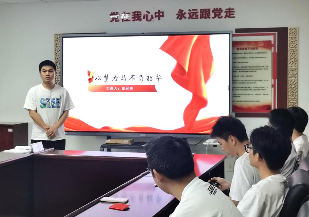 会上进行了入党积极分子推荐选拔。该项工作由2408班团支书欧阳子豪同志主持,梁召榜、董天昊、李逸、耿玉英、王旭龙、莫开寅、祝诗凯参与自我推荐。梁召榜在发言中表示:父亲是共产党员,他为人民服务的身姿从小就对我产生了耳濡目染的影响,我希望能像他一样成为一个光荣的共产党员。我有为同学服务的愿望,希望能投身于为人民服务的光荣事业中去,积极参与学生事务,为同学们谋福祉;我将坚守党的宗旨,投身于学生工作中去。”