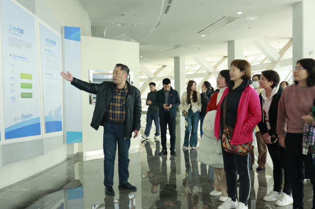 武汉新能源研究院副院长李黎带领大家进入以马蹄莲为设计理念的“武汉新能源之花”开始参观学习。近年来,新能源研究院通过整合国内外新能源相关领域的人才和技术资源,围绕科技创新和创业服务两大核心业务,着力从技术研究、项目孵化、产业投融资和仪器设备共享四个方面提升创新与服务能力,在新能源开发、能量存储与转化、能源互联网、节能环保及碳减排、能源规划及城市低碳发展等领域实现重大突破,培育一批新能源领域的创新型技术和企业。