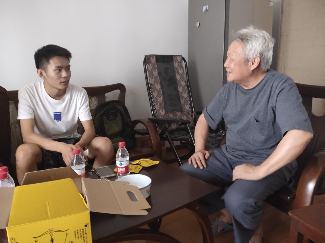唐老师待我们坐下后,热情地拿给我们饮料和零食。我们问起老师的年龄时,他幽默地答道:“精确地来说,84.8岁了。”唐老师的亲切与幽默很快令我们稍显紧张的心情放松了下来。